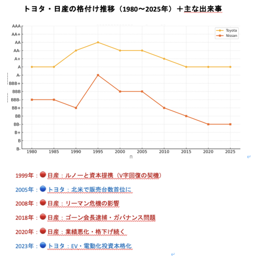 | 1990年代 | BBB- | Baa3 → Ba1(末期) | 業績悪化とバブル崩壊影響 |