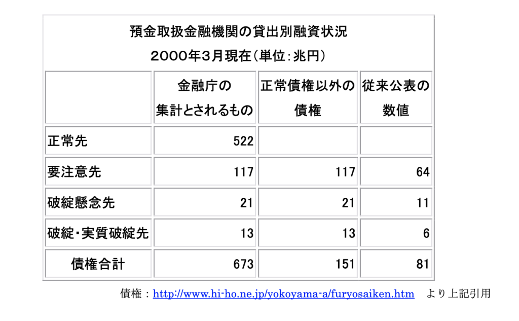 庁が銀行が返済の確実性が低いと認定している問題債権を81兆円として既に公表しているが、そのほかに優良な担保や保証