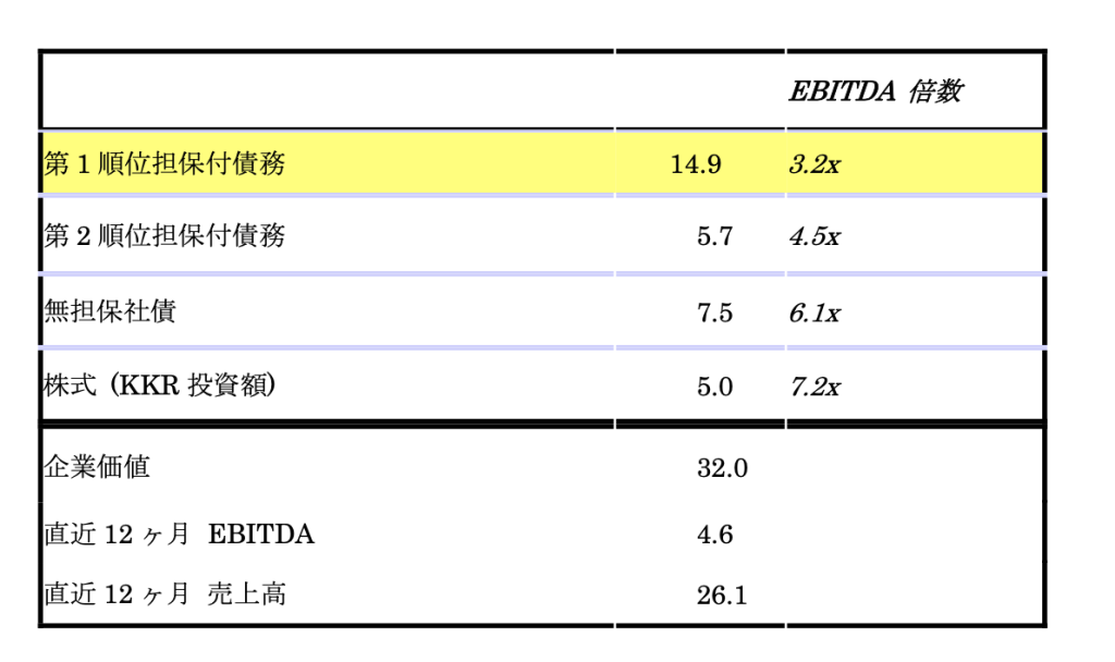 ② 当該企業に適合した Interest Coverage Ratio により借入金額、優先、劣後を決定。