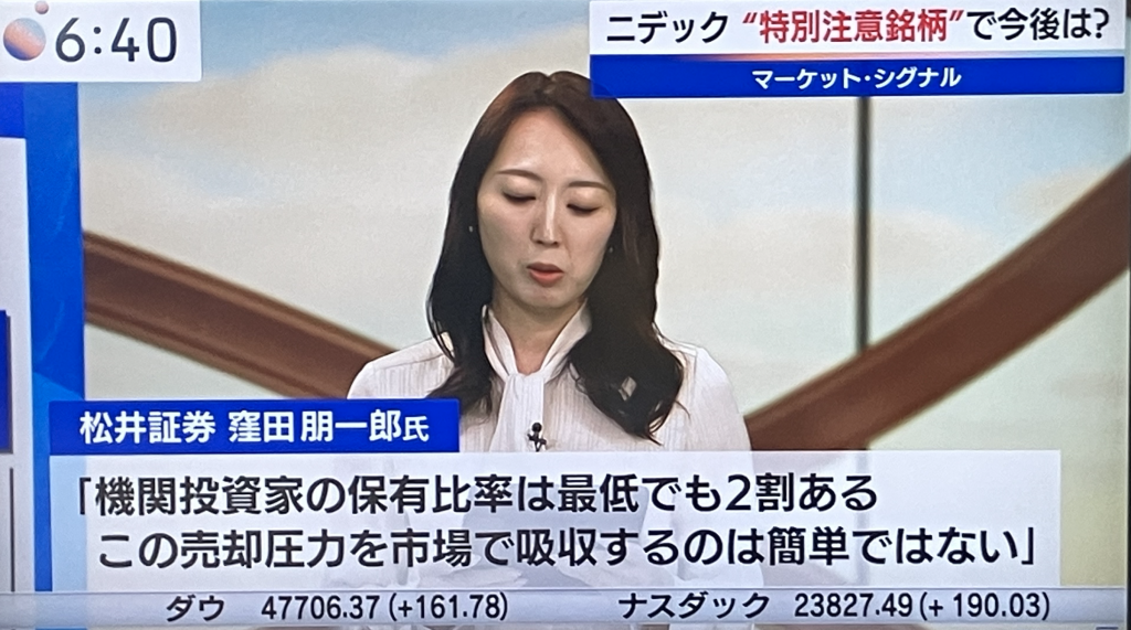 インデックスの銘柄入替の実例にもなりました。これに伴い、ニデック売りに対応不可能の声も、、、